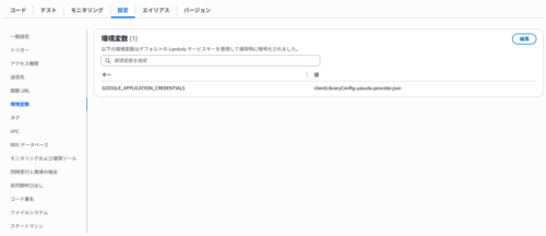 Lambda関数に構成情報を設定した後、Vertex AIにリクエストを送る