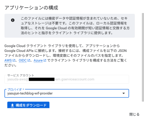 「構成をダウンロード」を選択してjsonファイルをダウンロードします。