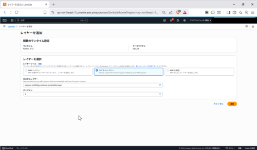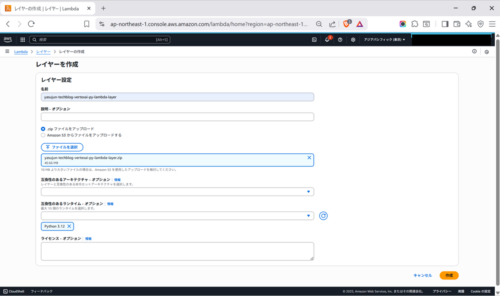 コンソールからZIPファイルをアップロードした後、レイヤーを作成します。