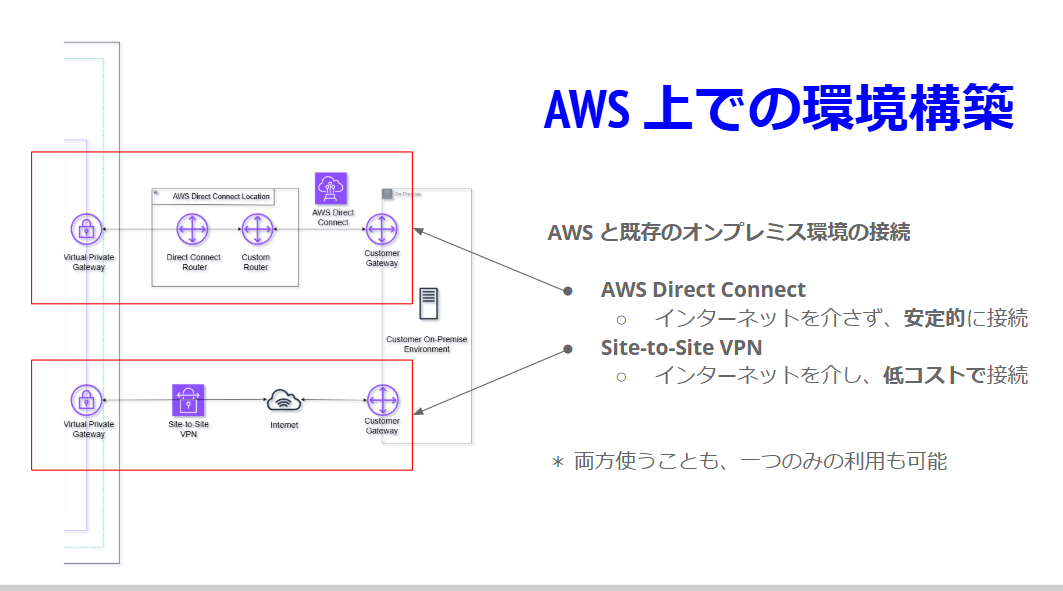 その他、SLA とは何か、Direct Connect と Site-to-Site の具体的な違い、リソースが VPC 内なのか外なのかなど、AWS の知識の面でも理解できていないことがたくさんあることに気づかされました。