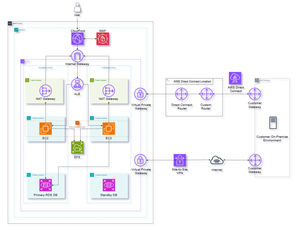 Site-to-Site VPN と Direct Connect の両方を使用し、Auto Scaling Group も使っています。