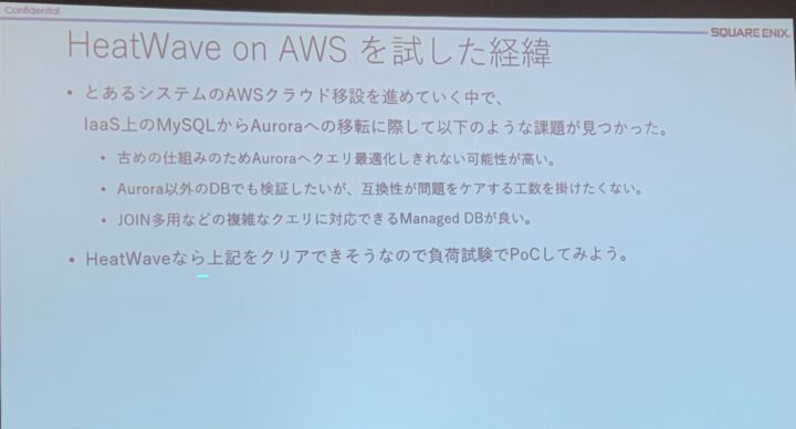 Aurora への移行検討時に直面した課題を、HeatWave でどう解決したか。