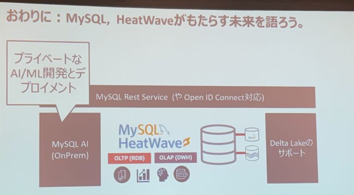 最後のクロージングでは、MySQL HeatWave が目指す未来像が紹介されました。