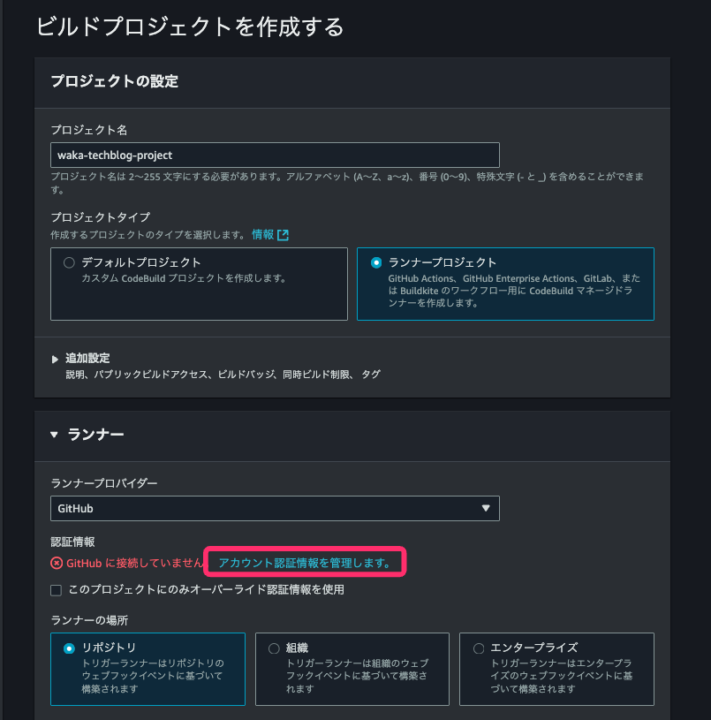 ご参考 : AWS CodeBuild がホストする GitHub Actions ランナーを設定