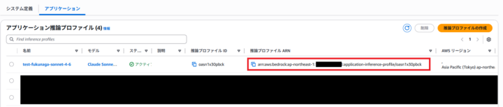 ※作成した推論プロファイルと同一のリージョンを指定すること