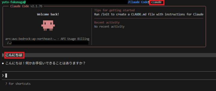 設定が完了したら、claude コマンドを実行して Claude を起動します。